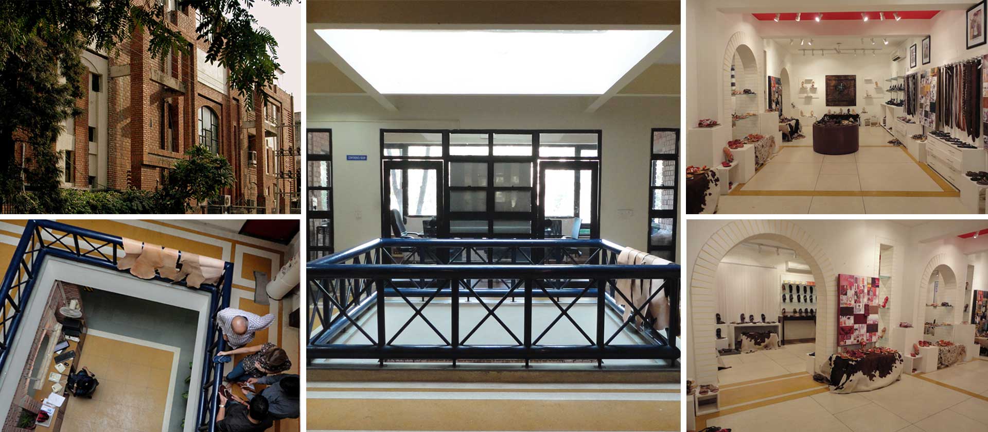 The clients are the leading exporters of leather goods in India. The facility was designed to communicate the priorities of the organisation in terms of high level of craft, quality and Indian artisanship. The latter was what inspired the fine quality of brick craftsmanship, by historical references, where each panel is differently delineated within the overall thematic design.